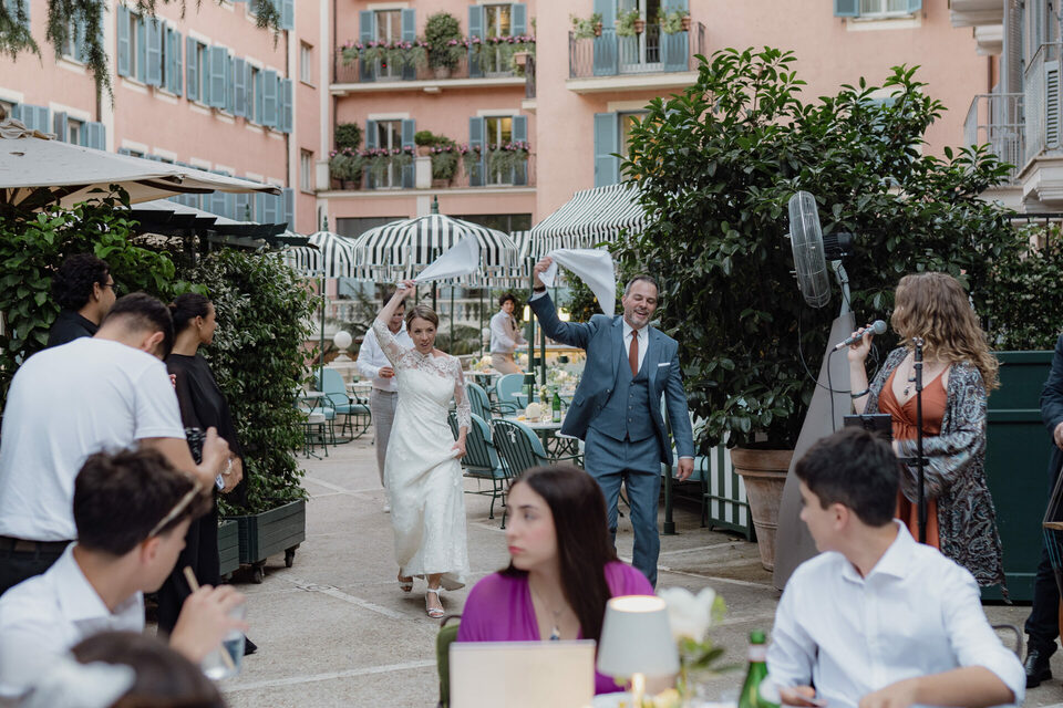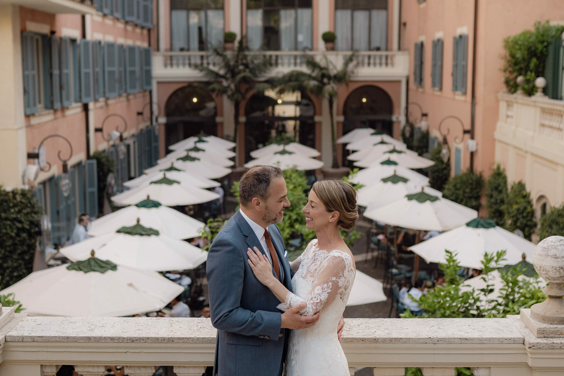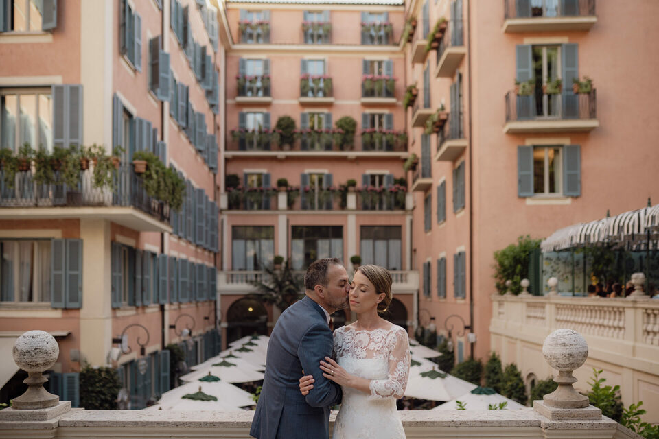 Após a cerimônia, seguimos para a recepção no icônico Hotel de Russie, um dos hotéis mais elegantes de Roma. Localizado entre a Piazza di Spagna e a Piazza del Popolo, o hotel combina sofisticação clássica com jardins secretos que parecem um refúgio no meio da cidade eterna.