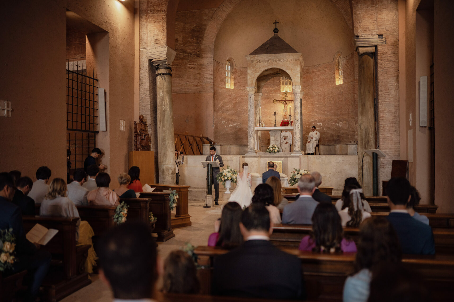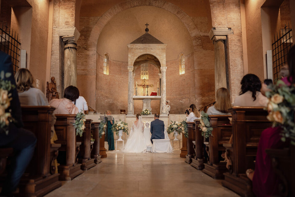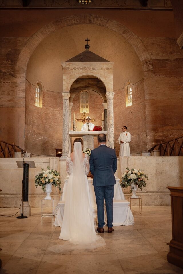 A cerimônia aconteceu em um dos lugares mais simbólicos e especiais do mundo: a Chiesa di Santo Stefano degli Abissini, localizada dentro do Vaticano. Um espaço íntimo, cheio de significado, onde cada detalhe carrega séculos de história. Fotografar um casamento nesse ambiente é sempre um privilégio — a luz suave, a arquitetura e o silêncio do lugar criam uma atmosfera única para um “sim” inesquecível.