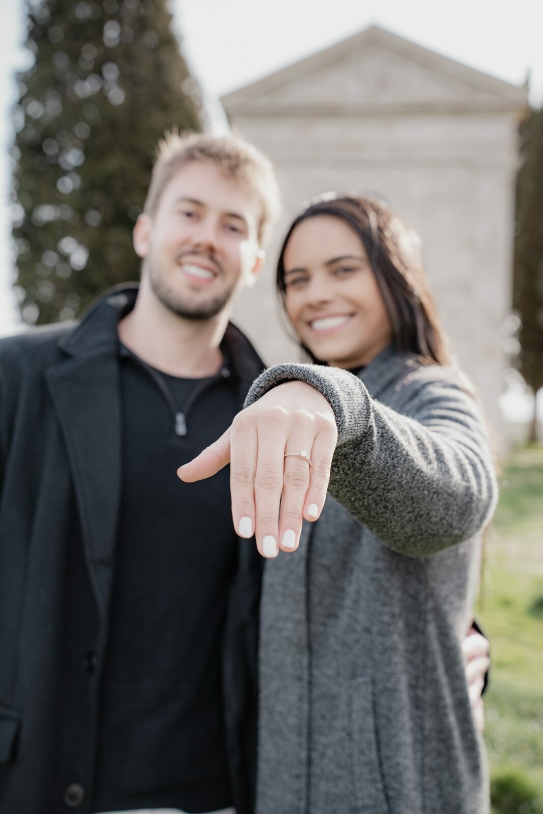 Depois do “sim”, fizemos um ensaio fotográfico na Toscana, aproveitando a luz incrível do final de tarde e as paisagens que fazem dessa região uma das mais bonitas da Itália.