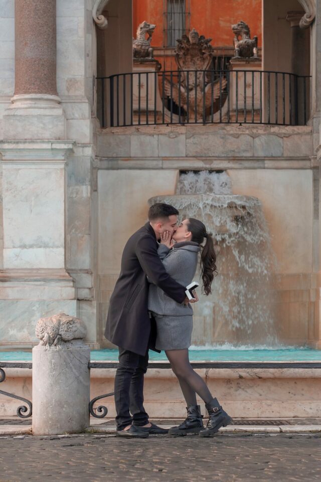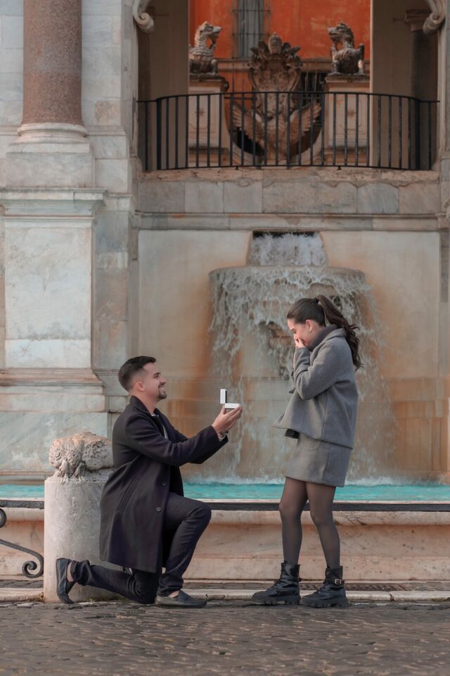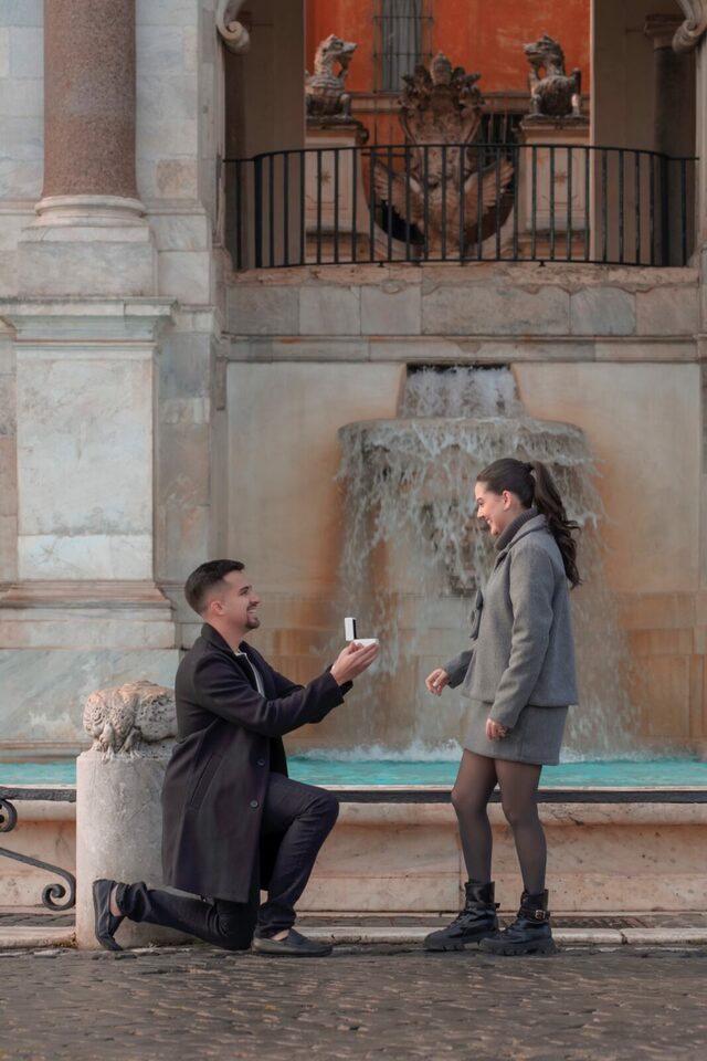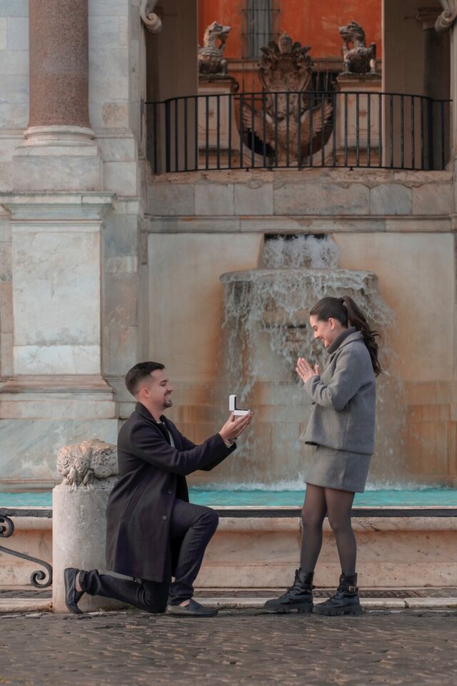 Enquanto fazíamos as fotos, aproveitamos o deslumbrante pano de fundo da fonte e a luz mágica de Roma. Em um momento especial, Lucas se ajoelhou e fez a tão esperada pergunta. A emoção foi palpável, e as fotos capturaram a felicidade e o amor que transbordaram naquele instante.