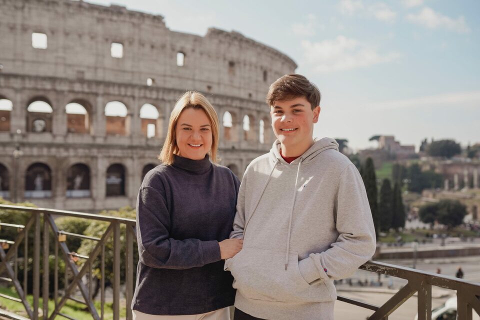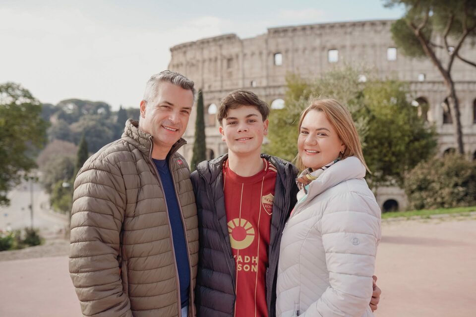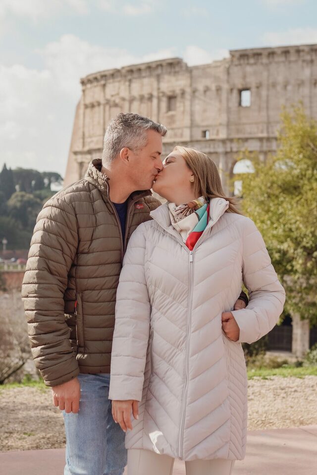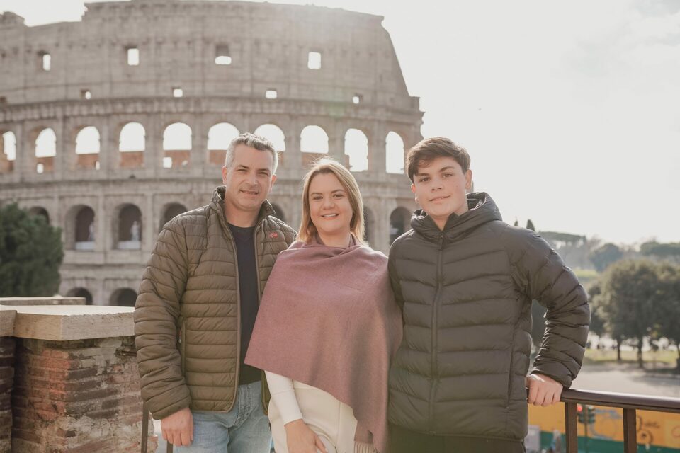 Entre risadas e momentos espontâneos, registramos cada detalhe dessa experiência única em um dos lugares mais icônicos do mundo. O Coliseu, com sua grandiosidade e história, serviu como pano de fundo para fotos que certamente ficarão guardadas para sempre na memória da família.