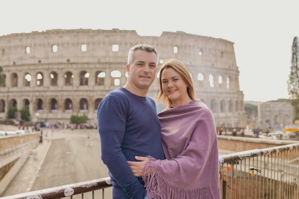 Tudo começou quando Gisele entrou em contato comigo alguns dias antes de sua viagem para Roma. Ela, o marido e o filho estavam vindo da Inglaterra, onde já haviam feito um ensaio fotográfico em Londres. Como gostaram tanto da experiência, decidiram repetir na Itália para registrar essa viagem especial. Uma conhecida dela me indicou, e logo combinamos os detalhes para um ensaio inesquecível no Coliseu.